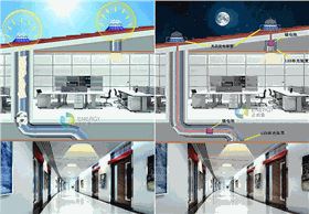 正能量科技導(dǎo)光管照明系統(tǒng)是通過室外采光裝置高效收集自然光,并由導(dǎo)光管將光反射后傳輸至漫射器,由漫射透鏡對陽光進(jìn)行打散讓光線變的柔和、均勻照射到室內(nèi)各個角落。晚上利用光伏發(fā)電裝置白天所發(fā)的電帶動無電照明系統(tǒng)里加裝的LED補光模塊進(jìn)行照明,實現(xiàn)24小時無電照明。